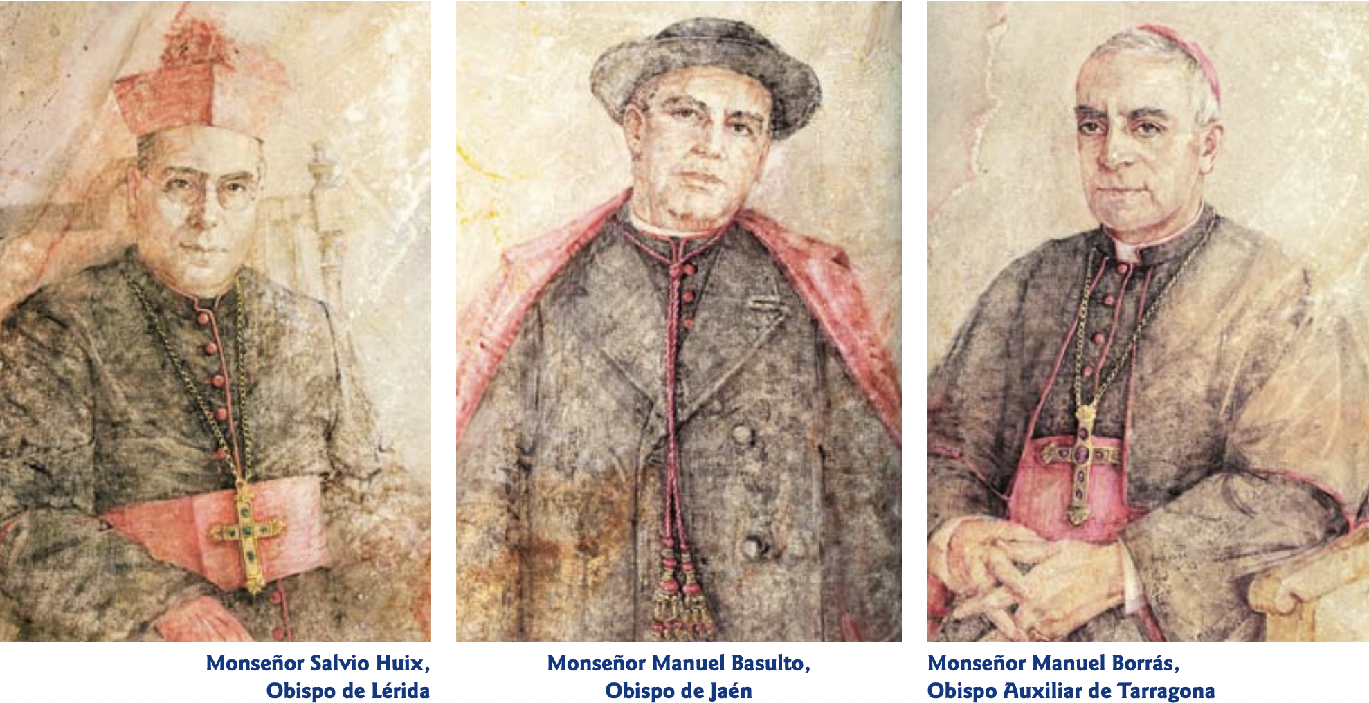 Obispos. Incluyen los Obispos Monseñor Salvio Huix, Obispo de Lérida, Mons. Manuel Basulto, Obispo de Jaén, y Mons. Manuel Borrás, Obispo Auxiliar de Tarragona.
