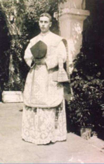 El sacerdote Juan Huguet el día de su primera Misa. Con las mismas vestiduras litúrgicas le vistió su madre para el entierro.