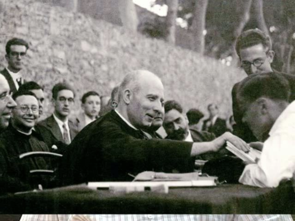 Bajo estas líneas el Beato Josep Samsó en el reparto de premios de catecismo. La fotografía fue colgada en la web http://germinansgerminabit.blogspot.com.es/ con motivo de la fiesta del Beato el pasado 1 de septiembre.