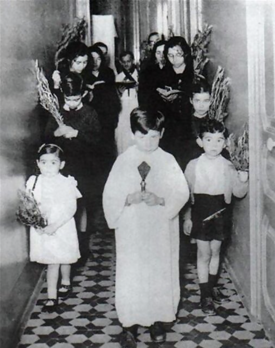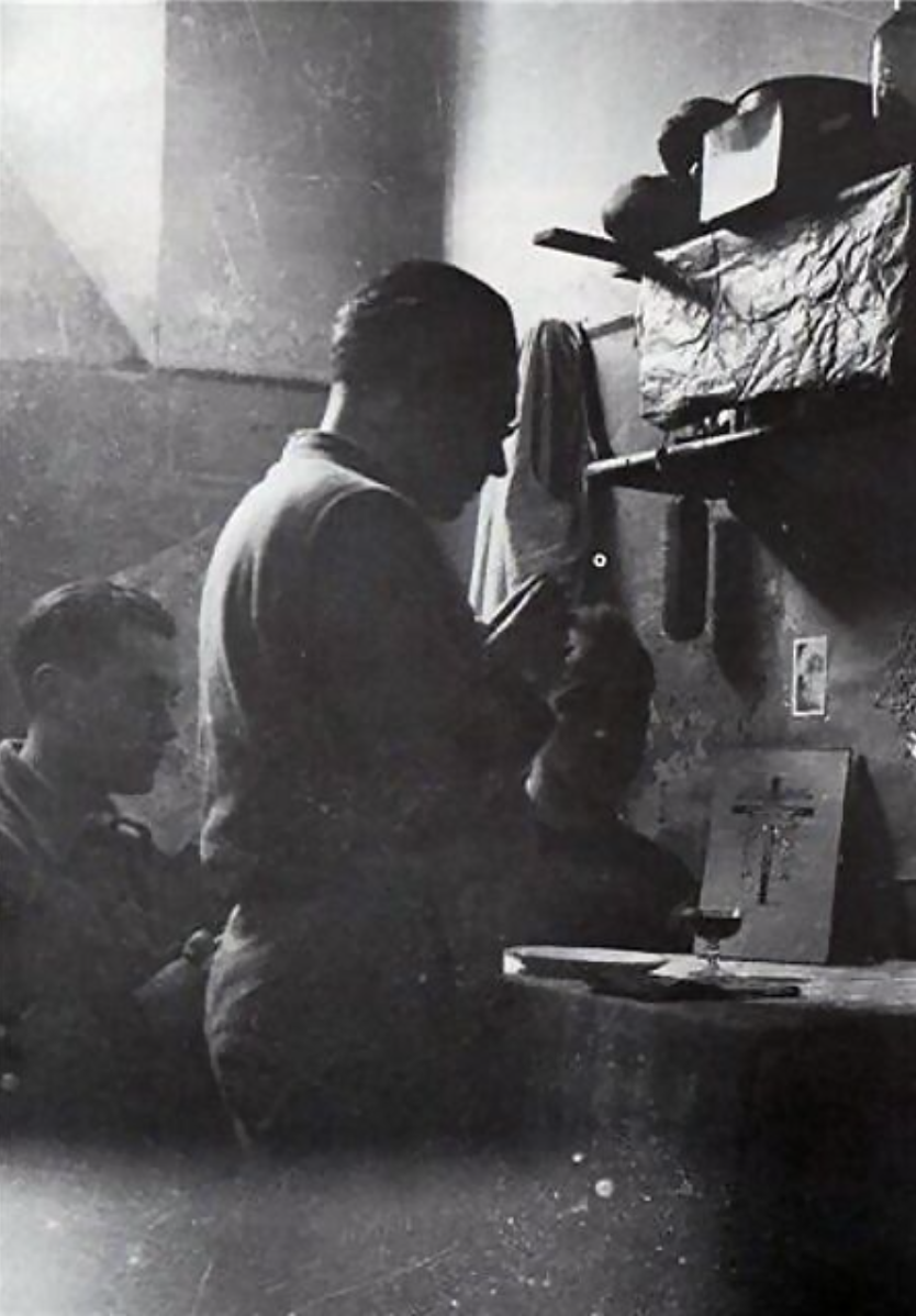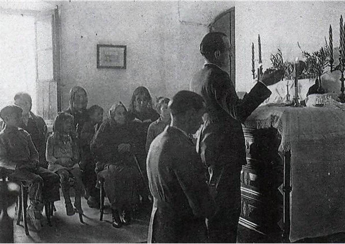 Durante todo el tiempo de la dominación roja, las prácticas religiosas tuvieron que hacerse de manera clandestina. Nos reuníamos en casa de un amigo y allí el sacerdote, sin ornamentos y vestido de seglar, celebraba la Santa Misa; por cáliz utilizaba una copa de cristal y todos recibíamos la Sagrada Comunión, oyendo muchas veces los avisos de las alarmas de las sirenas y los estruendos de los bombardeos. Nos fue dispensado el ayuno, y ello nos permitía comulgar en cualquier hora del día, porque estábamos constantemente en peligro de muerte. En la cárcel, Dios misericordioso también nos permitió poder comulgar, y por la noche, antes de ser cerradas las celdas, recibíamos las Sagradas Formas dentro de un sobre; y a la mañana siguiente las tomábamos disimulando en lo posible ante los presos no católicos, nuestras prácticas eucarísticas.