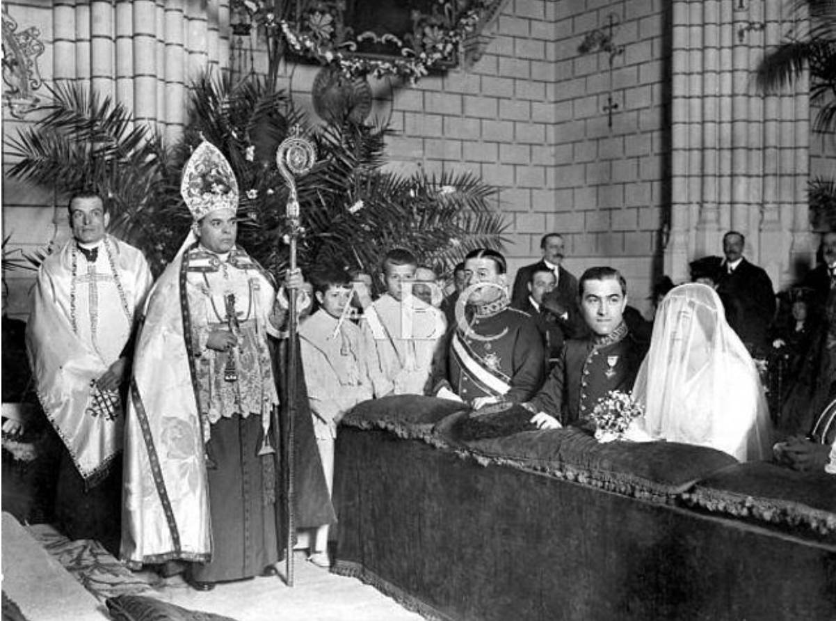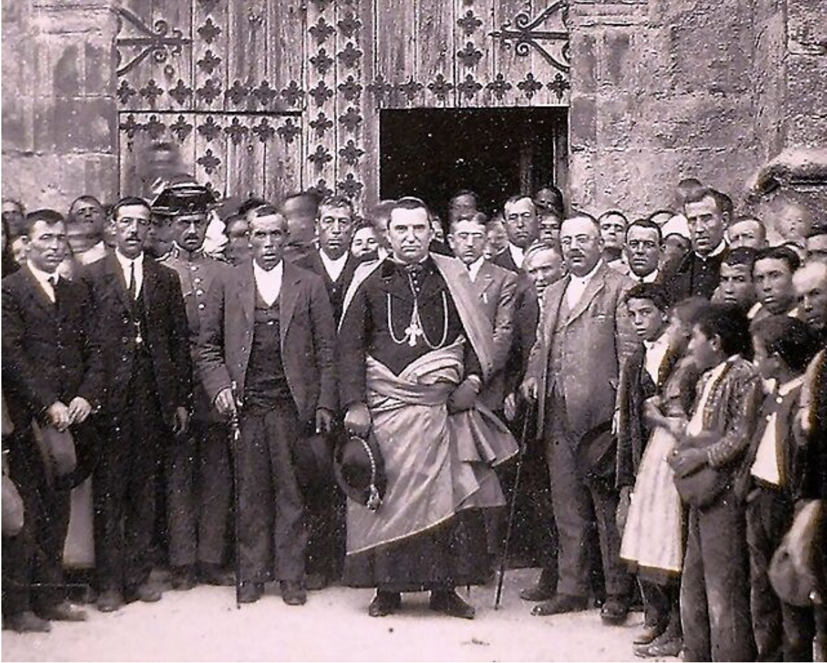 El primero que recibió la palma del martirio fue el Obispo de Sigüenza, don Eustaquio Nieto y Martín (en la foto durante el sacramento del matrimonio de unos conocidos), detenido el 26 de julio y asesinado al siguiente día en la carretera de Madrid, entre los pueblos de Estriégana y Alcolea del Pinar; al ser encontrado su cadáver tenía en el pecho medio incrustado el pectoral y pudo apreciarse que su cuerpo había sido rociado de gasolina, a la que prendieron fuego.