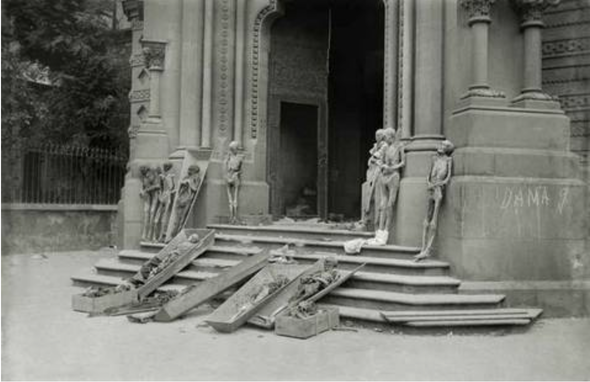 Momias de las monjas del convento de las Salesas profanadas y expuestas. Barcelona, agosto de 1936