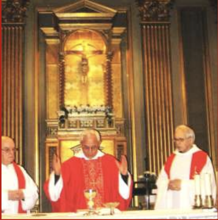 A las 6 de la tarde comenzó en el céntrico templo repleto de fieles la celebración de la Santa Misa, presidida por el Rvdo. P. Carlos Cano Andrés, religioso pasionista, ex rector del popular Santuario de Santa Gema, concelebrando con él el Rvdo .P. Nicolás EchaveSustaeta, Rector del Tempo Expiatorio del Tibidabo y el Rvdo. P. Carlos Mas de Xaxars y Gassó, ex rector de la Basílica de la Merced, patrona de Barcelona.