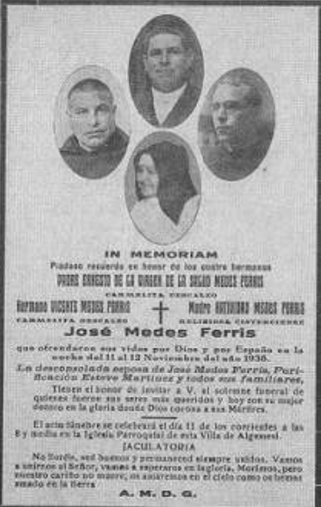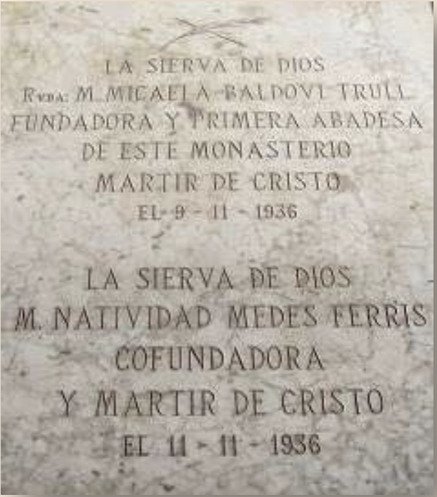 • M. NATIVIDAD MEDES FERRÍS, monja de coro del mismo monasterio, fusilada en la noche del 10 de noviembre de 1936.