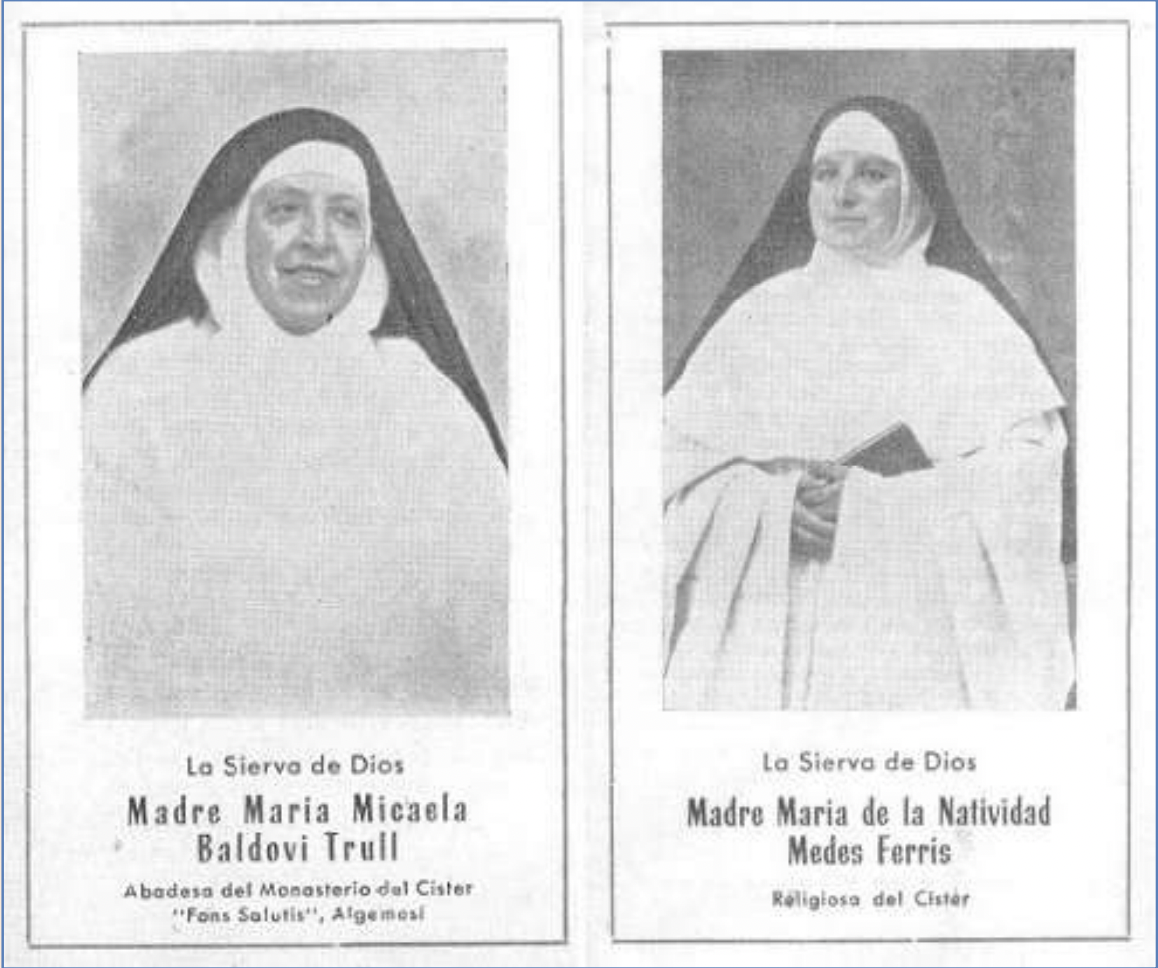 Nuevas Beatas mártires Madres Micaela Baldoví Trull y Natividad Medes Ferris, religiosas Cistercienses del Monasterio Fons Salutis de Algemesí.