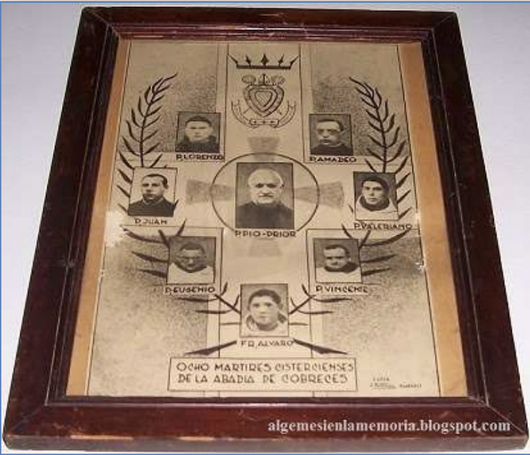 Antiguo cuadro de ocho de los mártires trapenses de la abadía de Cóbreces