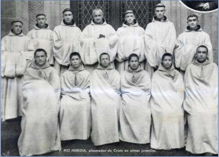 Corifeo del primer grupo de Mártires es el P. Pío Heredia, nacido en Larrea (Álava) en 1875, y bautizado con el nombre de Julián. Ingresado en el monasterio de Val San José, en Getafe, donde emitió la profesión solemne en 1897 y fue ordenado sacerdote en 1899, siendo maestro de novicios y prior claustral.