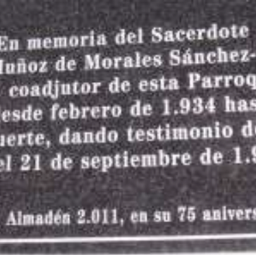 Ángel Muñoz de Morales Sánchez Cano, fue, entre febrero de 1934 y septiembre de 1936, Coadjutor de la Parroquia de Almadén, y su martirio ha sido reconocido por el Sr. Obispo de Ciudad Real, de manera que puede ser denominado con el título de Siervo de Dios, encontrándose en proceso su causa de beatificación.