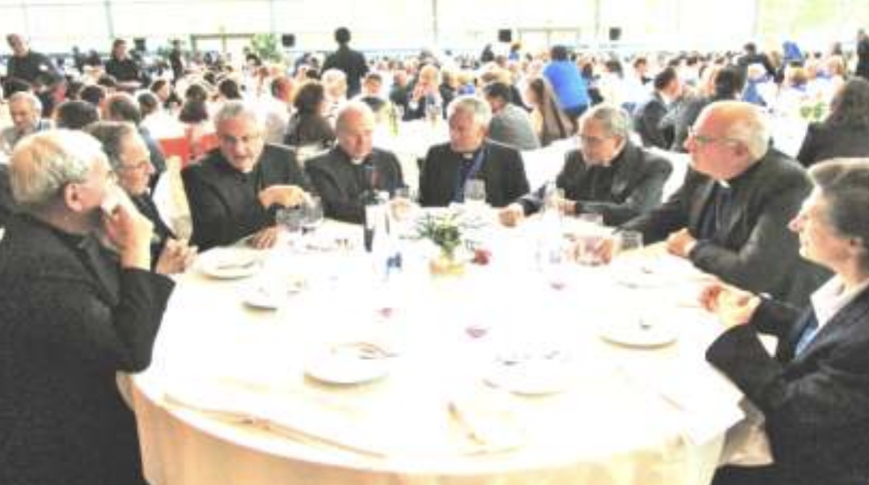 El Nuncio de S.S. en España Mons. Fratini en la mesa presidencial del almuerzo, con el Arzobispo de Tarragona Mons. Pujol, el obispo de la Seo de Urgel Mons. Vives, el obispo de San Feliu Mons. Cortés, el obispo de Vic Mons. Casanovas, el abad de Montserrat y la postuladora de la causa.
