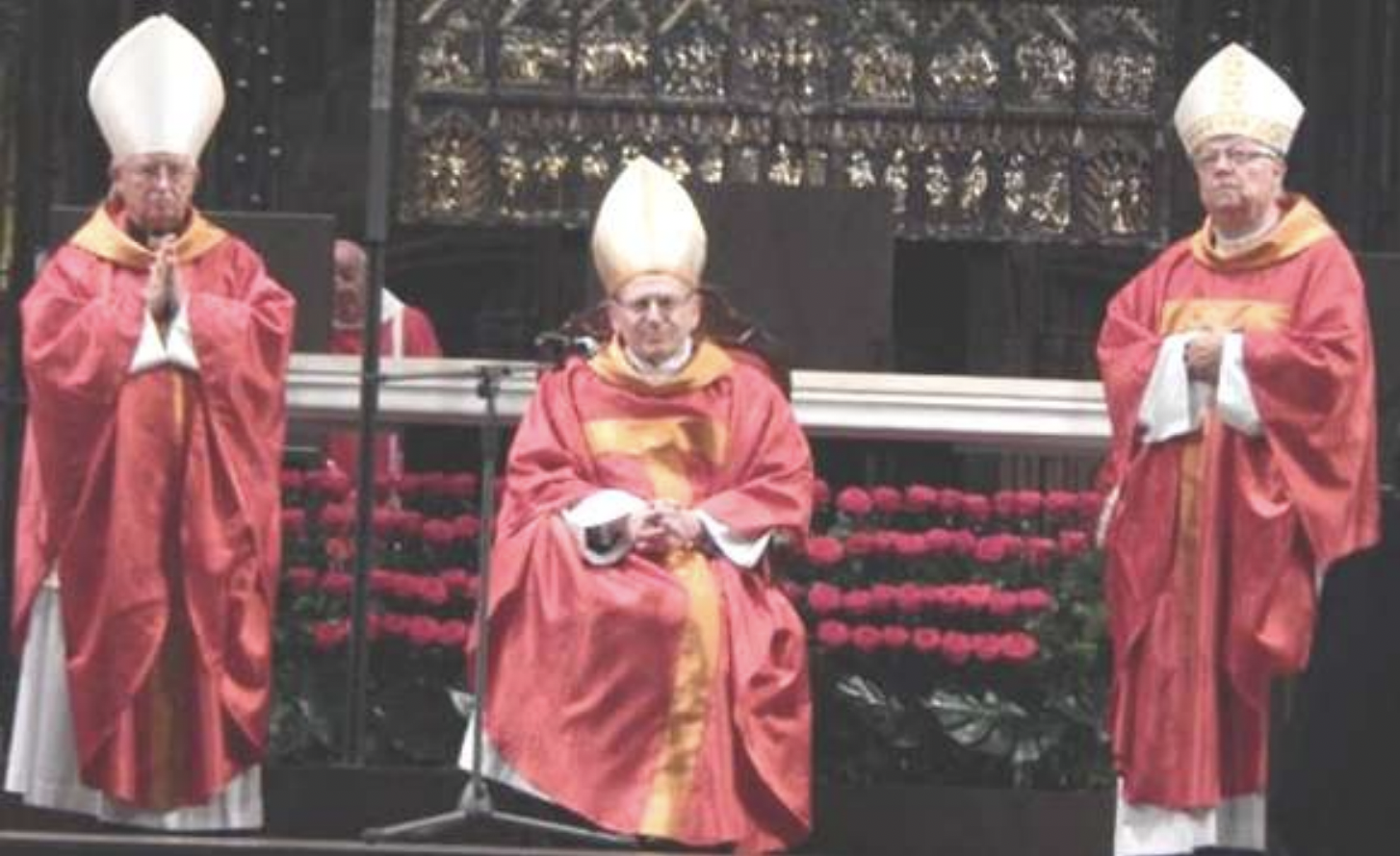 El Cardenal Amato, asistido por el Cardenal Cañizares y Mons. Pardo, obispo de Gerona