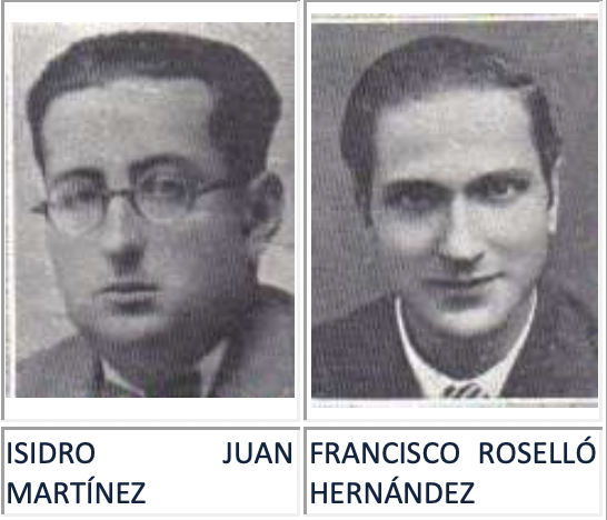 Juntos también entregaron su alma al Creador el 18 de octubre del 1936 dos antiguos presidentes de la Asociación: ISIDRO JUAN MARTÍNEZ, abogado, que había defendido la religión y los derechos de la Iglesia en sus escritos, y FRANCISCO ROSELLÓ HERNÁNDEZ.