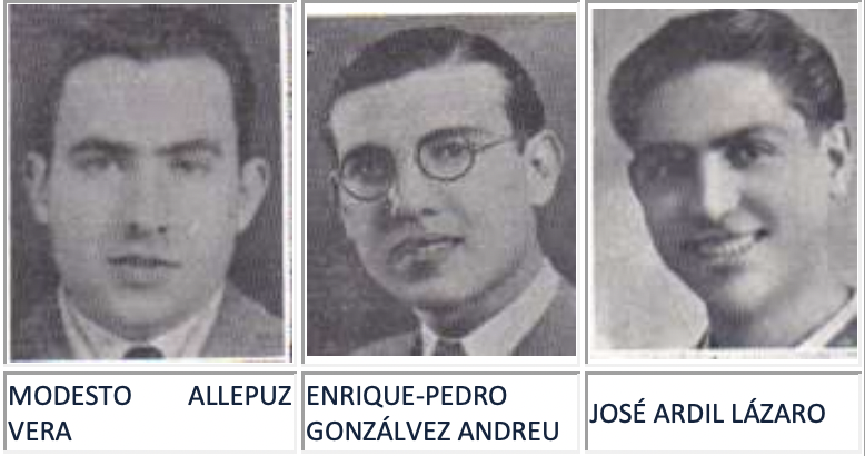 El martirio más conocido y sobre el que hay más documentación escrita es el del trío formado por MODESTO ALLEPUZ VERA empleado, de 30 años, casado y con dos hijos muy pequeños; ENRIQUEPEDRO GONZÁLVEZ ANDREU, oficial de notaría, de 26 años y JOSÉ ARDIL LÁZARO de 22 años, miembros destacados de la Asociación. Los buscaron en sus domicilios y, tras un tiempo en prisión, condenados en un juicio irrisorio, el primero del Tribunal Popular de Murcia, trasladado para ello al arsenal de Cartagena, fueron fusilados el 22 de septiembre de 1936 en el cementerio de esta ciudad. Se les imputaron figurar juntos en todos los actos de culto público y escribir en defensa de la religión, de la moral pública, de la doctrina social de la Iglesia. Para morir se pusieron la medalla con el cordón azul y blanco de congregantes, como solían hacerlo para comulgar. De hecho la bala que segó el corazón de Gonzálvez, atravesó el metal de su medalla milagrosa que hoy guarda la familia como la mejor reliquia. Poco antes se confesaron, cantaron la salve y el himno de la Asociación y perdonaron a sus verdugos, despidiéndose con abrazos de sus carceleros en señal de perdón, según consta en acta notarial.