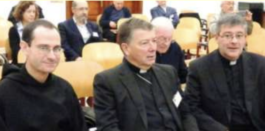 Mons. Juan Antonio Martínez Camino con el Padre Santiago Cantera y Mn. Jorge López Teulón en la conferencia de Dª Belén Carreras