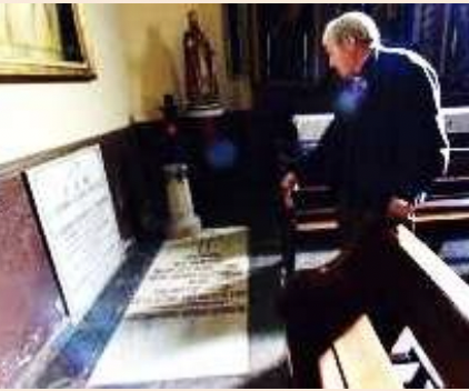 El actual párroco de Santiago de Membra ante la sepultura que cavaron tres de los mártires.
