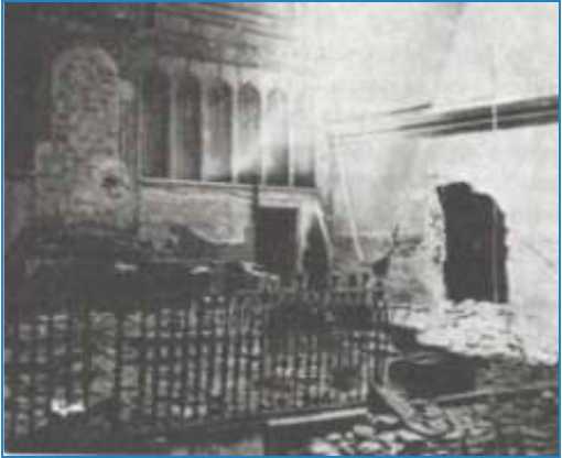 Foto del Altar mayor de la Parroquia de San Pedro incendiada.